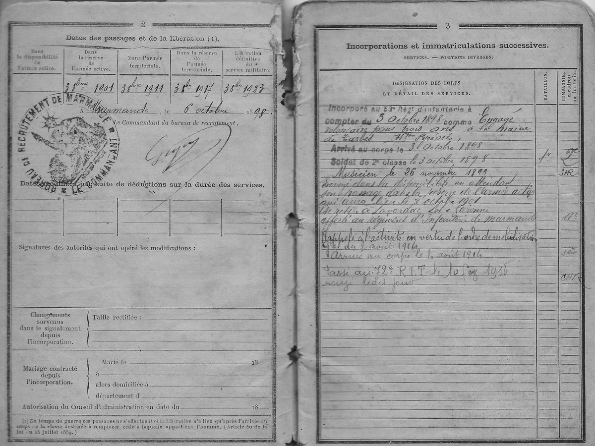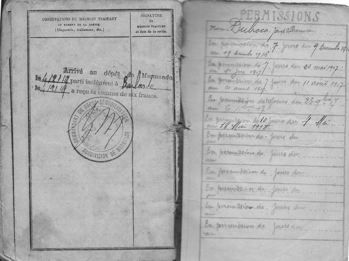 Livret de mobilisation de Joseph Arthur Dubroca