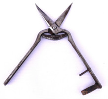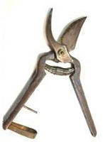les CISEAUX (à vendange) : Sécateurs à lame fine, longue et pointue, à poignée évidée, légère pour couper les raisins durant les vendanges.
