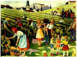 Le FOULAGE : le foulage vient pour annoncer la fin des vendanges proprement dites ; on passera ensuite dans le chai.