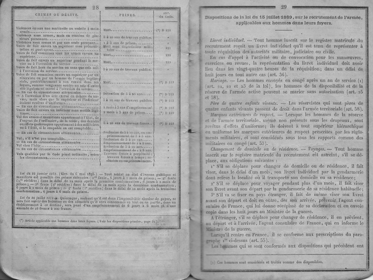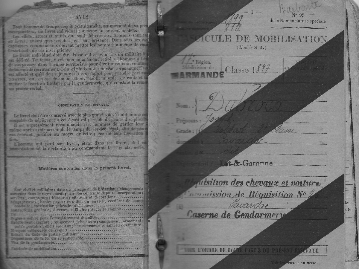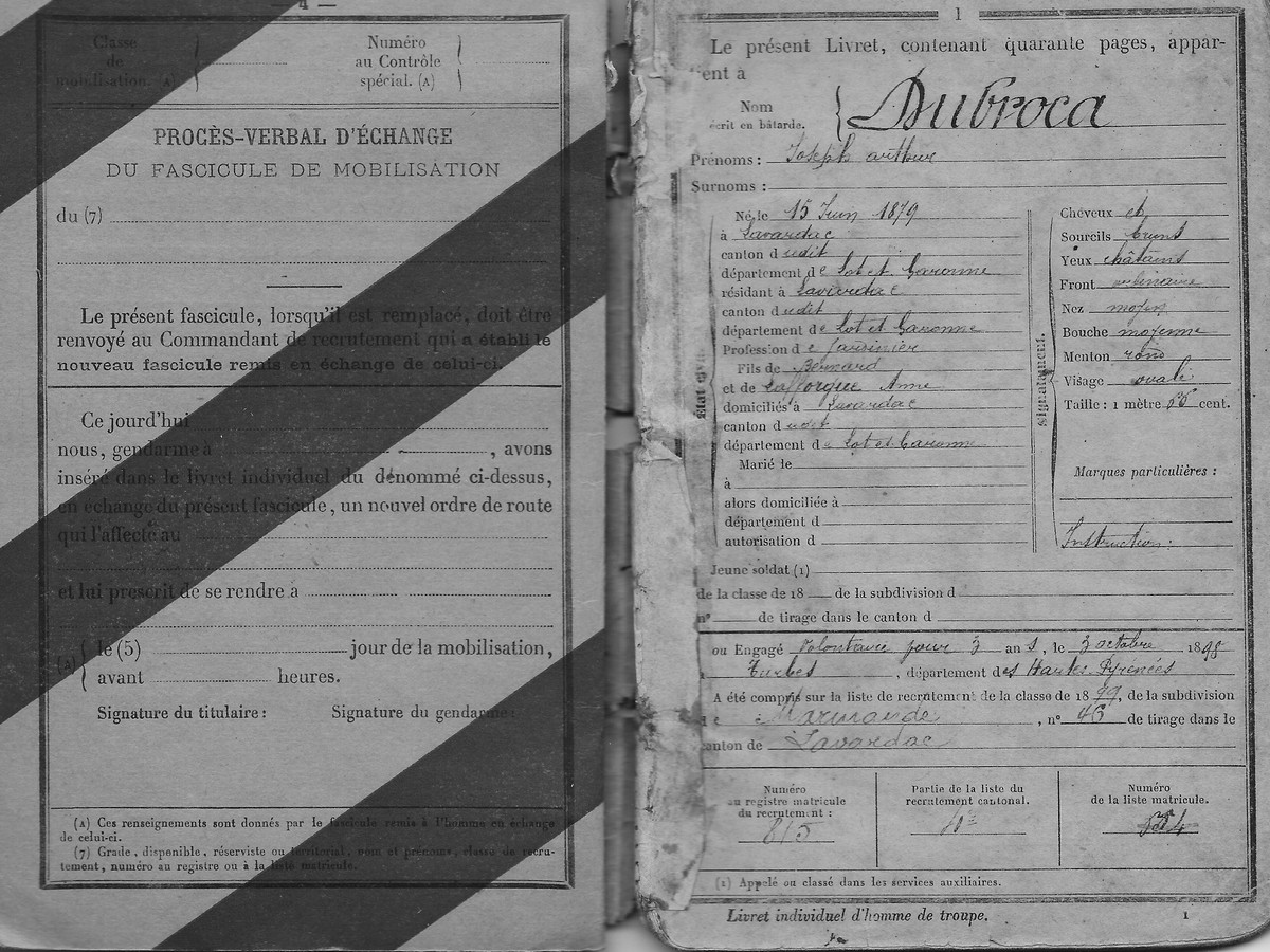 Livret de mobilisation de Joseph Arthur Dubroca